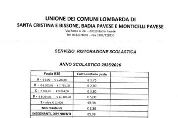Tariffe ristorazione e servizio scuolabus a.s.2025/2026