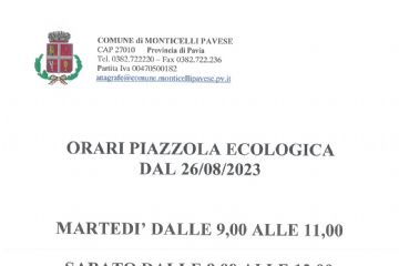 Dal 26 agosto 2023 i nuovi orari apertura piazzola ecologica sono :